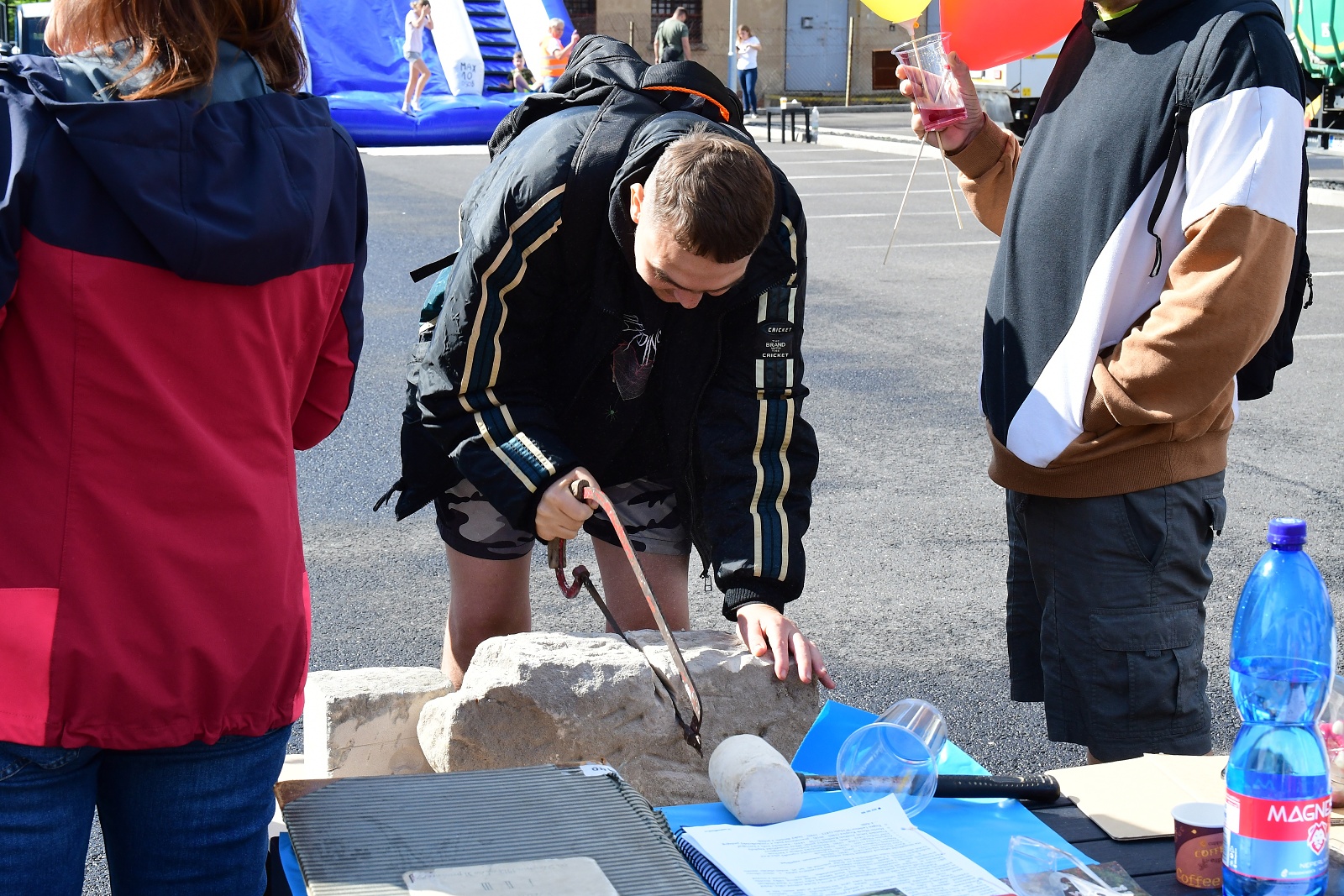 Děti si mohly vyzkoušet veškerou techniku, tesání do kamene a také vyplnit soutěžní kvíz, za jehož úspěšné zvládnutí obdržely po slosování drobné ceny. „Děkujeme společnosti Baracom za zapůjčení nafukovací klouzačky, která měla u dětí velký úspěch,“ doplnil Vítězslav Votruba.