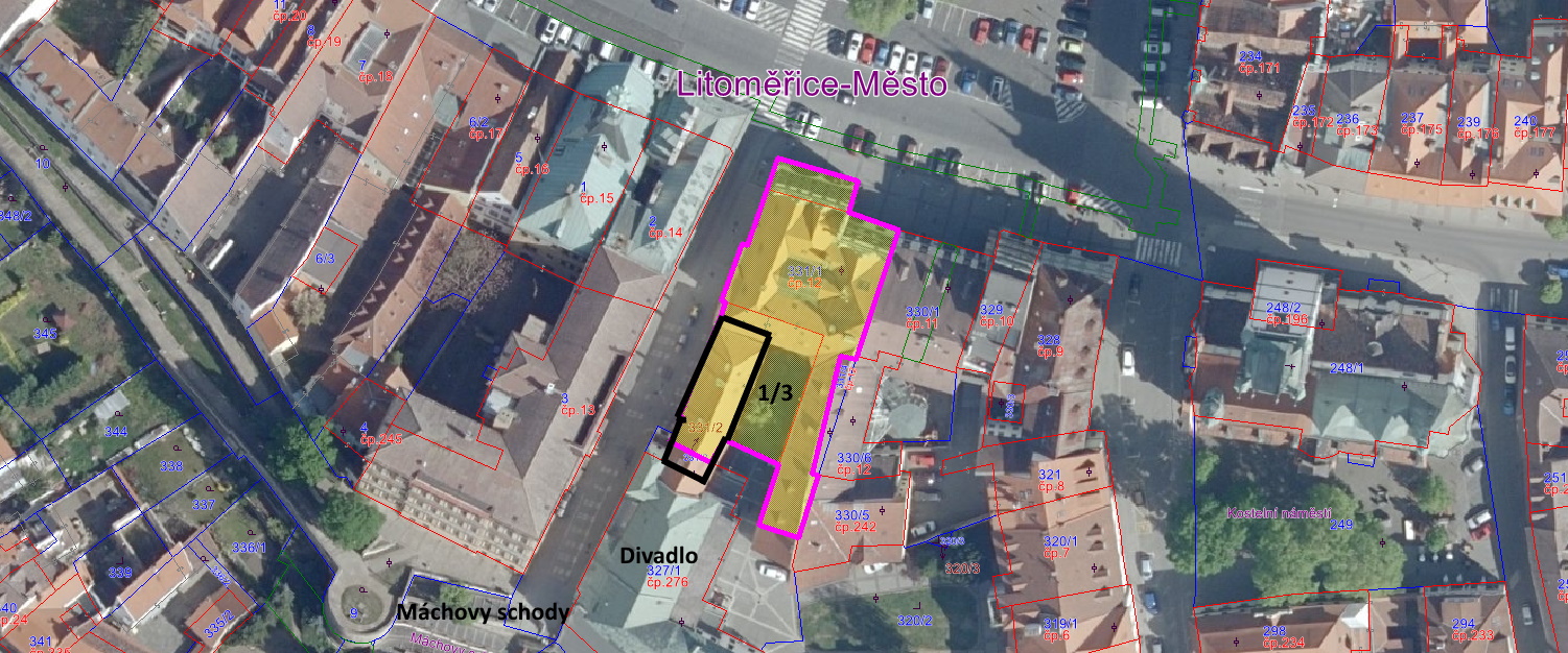 2. Záměr nákupu nezapsaného pozemku parc.č. 331/5 včetně stavby, parc.č. 331/2 včetně stavby a 1/3 pozemku parc.č. 331/6 vše v k.ú. Litoměřice